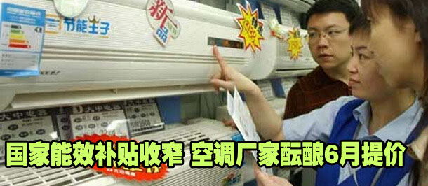 ?近日,賣場(chǎng)人士對(duì)記者透露:由于國家能效補(bǔ)貼收窄,從6月1日起節(jié)能空調(diào)補(bǔ)貼將從現(xiàn)在的300~850元下調(diào)至250元以下,因此空調(diào)廠家普遍醞釀在6月初提價(jià),高能效空調(diào)預(yù)計(jì)提價(jià)在200~600元左右。因此今年5月份將是近年購買空調(diào)的“最劃算”時(shí)期。