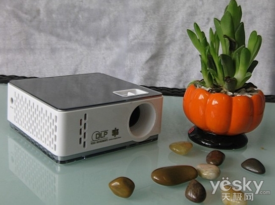 作為標(biāo)準(zhǔn)的微型投影機(jī),網(wǎng)訊S10重量400克,整機(jī)尺寸為120*118*47毫米,僅為成年男子手掌大小。整體外觀簡(jiǎn)潔大方,頂部的按鍵是觸摸式面板,與機(jī)身融為一體。