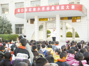 ??? 12月9日,周口市實(shí)驗(yàn)小學(xué)舉行“經(jīng)典誦讀”比賽活動(dòng),全校1800多名學(xué)生參加此次活動(dòng)?;顒?dòng)的開(kāi)展進(jìn)一步弘揚(yáng)了中華傳統(tǒng)文明,提升了學(xué)生的文化素質(zhì)和道德修養(yǎng),培養(yǎng)了學(xué)生的愛(ài)國(guó)情感和民族自豪感,推動(dòng)了“書(shū)香校園”的創(chuàng)建工作。(杜威?應(yīng)亞麗?攝) |
