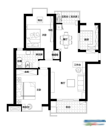 房 型:2房2廳一廚一衛(wèi),南北陽(yáng)臺(tái)