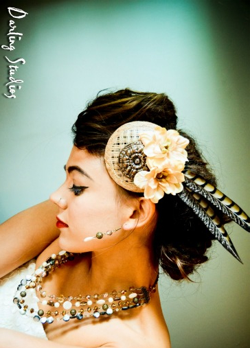 波西米亞異域的浪漫與自由、東方國度的神秘與意境、非洲大草原的狂野與奔放,都融入到新娘婚禮頭飾的夸張設計中。超大比例的珍貴彩石,羽毛與花朵,炫目的色彩編織一首新娘的狂想曲。新民族風格的頭飾對新娘的氣質(zhì)十分挑剔,相對來說更適合那些飽滿圓潤型的新娘佩戴。亮片和絲綢面料及具有東方設計元素的禮服是最佳拍檔。
