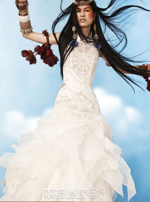 ??? Yolan Cris的西藏風(fēng)情,中國(guó)元素蔚然呈現(xiàn),除去滿目琳瑯的夸張飾品,細(xì)看這組婚紗設(shè)計(jì),繁復(fù)蕾絲的精巧設(shè)計(jì)光彩奪目,此般復(fù)古風(fēng)情是不是能夠打動(dòng)你的心呢