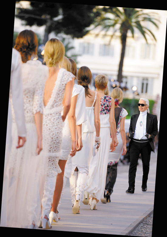 隆重其事是CHANEL慣來對早春發(fā)布會的態(tài)度,近幾年都將陽光沙灘作為最重要的背景。而原裝正版的2012早春發(fā)布會早在今年戛納電影節(jié)之前就舉辦了,因為會場設(shè)置在緊挨著昂蒂布海岬的Eden-Roc酒店,距離電影節(jié)現(xiàn)場相當(dāng)近,到場的明星名人也相當(dāng)多,包括有國內(nèi)代表湯唯,一派星光熠熠,所以也被譽為戛納紅地毯的預(yù)演。到今年九月份,品牌將部分作品帶到北京一艘游艇上,面對國內(nèi)媒體再現(xiàn)了這場屬于2012早春的華麗假期。