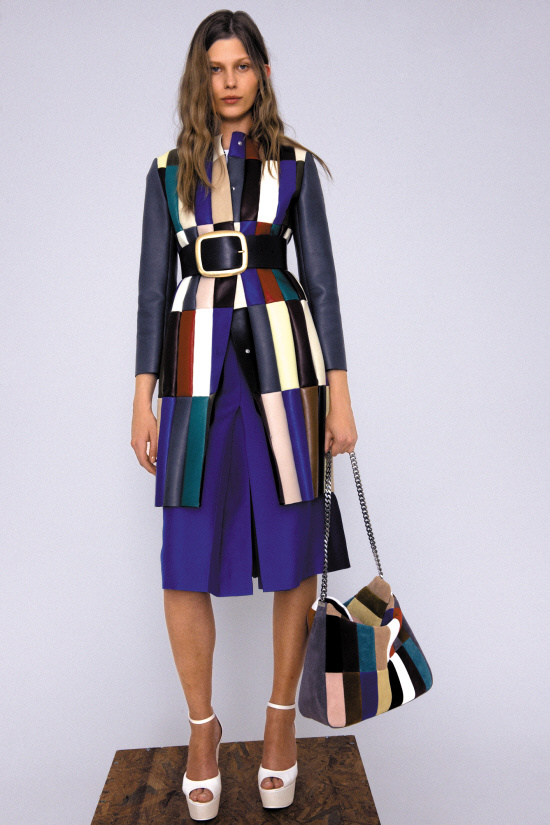 另外一位炙手可熱的創(chuàng)意總監(jiān)Phoebe Philo繼續(xù)玩味強烈的對比風(fēng)格,大膽明亮的色彩與出乎意料的組合同時出現(xiàn),跟前幾季的極簡主義相比,已然豐富不少。中性元素涵蓋了西裝、襯衣、長褲等經(jīng)典的明星款式。譬如引來不少話題的“視錯覺”西裝外套,靈感來自最為傳統(tǒng)的男式雙排扣學(xué)生服。正面不重疊的設(shè)計給人一種尺寸太小的錯覺,實為營造一種男孩子氣。而百搭的白色襯衣,這一男士衣櫥中最基本的單品,已經(jīng)成為了CELINE極具象征性的款式之一,不論是燕尾服式還是男式經(jīng)典款,易于搭配的白色襯衣都必不可少。里維埃拉長褲,靈感來自傳統(tǒng)的“La garonne”(喜歡穿著男式服裝的女孩),是那些上世紀30年代極具代表性的女性,在法國里維埃拉海灘別墅中閑逛時所穿的長褲,低胯闊腿設(shè)計,腰部裝飾雙層皺褶。不是簡單的哈倫褲,更有一種度假優(yōu)雅風(fēng)味。