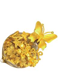 來自香港老字號俊文珠寶的副線金飾品牌Vera則在設(shè)計中走更潮流的路線。“流金樂頌”系設(shè)計靈感來自于精巧的漂流瓶。玻璃小瓶周圍由千足金打造蝴蝶、泰迪熊、玫瑰、小公主冠等華麗趣致的造型,而瓶中裝滿千足金箔,隨著透明液體自由舞動,閃閃生輝,宛若漂流瓶中的許愿砂。