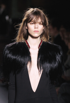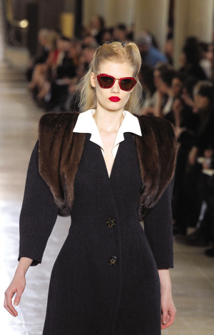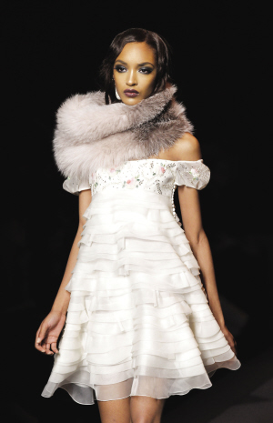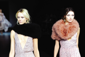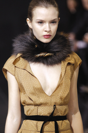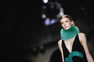設(shè)計(jì)師們愛(ài)用輕薄的料子搭配皮草圍脖,這樣做的最大的好處就是形成對(duì)比的效果。輕飄飄的薄紗裙子,圍一條皮草圍脖,既不會(huì)顯得太夸張,又能讓人看出這位好歹是冬天的美人。