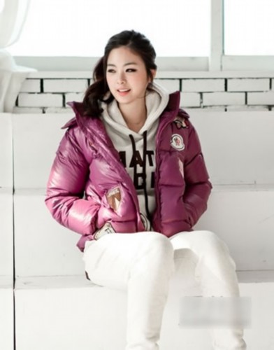 淡紫色短款羽絨服,繡花商標的裝飾讓這款羽絨服更加有休閑運動的風格,內搭毛衣或連帽衛(wèi)衣,保暖又時尚。
