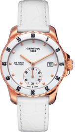 表圈、表盤、表冠上雪白晶亮的陶瓷,配合精致的玫瑰金邊,構成了這款腕表的古典而又活潑的風格。運用PVD玫瑰金鍍金的優(yōu)雅指針,輕盈地行走在雪白表盤上的12個漂亮的金字塔形時標間,拋光表耳與配有蝴蝶形表扣的白色橡膠表帶相銜接,并且配備了瑞士雪鐵納著名的DS雙保險保護結構,在浪漫古典的氛圍中,躍動著生命韻律,仿佛白雪覆蓋下生機暗藏的大地。
