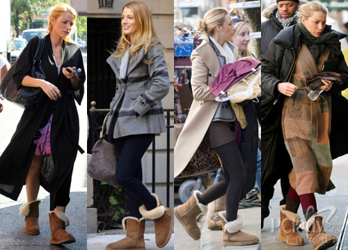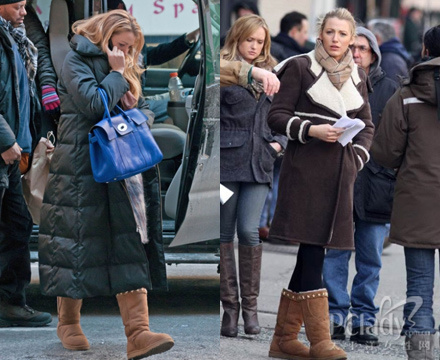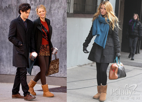 布萊克·萊弗利(Blake Lively) 街拍出鏡率最高的一雙UGG是MOU家2011新款翻毛雪地靴,俏皮的兩穿設(shè)計(jì)讓喜歡leggings的MM欲罷不能