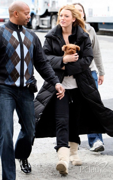 布萊克·萊弗利(Blake Lively) 大概是最愛(ài)UGG的歐美女星,不論是在《緋聞女孩》拍攝現(xiàn)場(chǎng)還是獨(dú)自上街購(gòu)物,UGG都不離身。經(jīng)典款棕色雪地靴+絲襪,讓擁有修長(zhǎng)雙腿的布萊克的曲線畢現(xiàn),雖然黑色長(zhǎng)款風(fēng)衣沒(méi)有可圈可點(diǎn)之處,但是里面的層次搭配才是重點(diǎn):碎花短裙+西瓜紅毛衣讓冬季街頭升溫不少