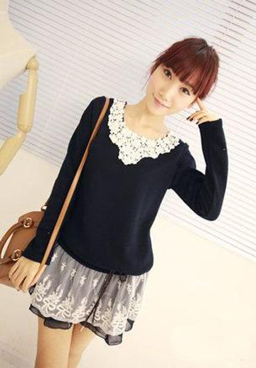 洋氣的藏藍(lán)色,領(lǐng)間蕾絲花邊外加美麗的雪紡擺,就算是一件普通的內(nèi)搭裙已經(jīng)很美妙。配合內(nèi)襯舒服的一層厚絨,單穿就甜美溫度兩不誤