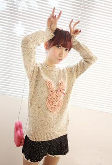 超級(jí)好看的一款內(nèi)搭毛衣,可愛的植絨兔子LOGO配合整體的絨絨手感,搭配迷你裙和毛毛圍巾都很贊