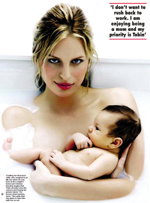 ????而時(shí)尚界對(duì)于這些辣媽更是寬容鼓勵(lì)甚至還帶著點(diǎn)推崇,可不是,無(wú)論是Miranda Kerr還是Adriana Lima,生完孩子一回伸展臺(tái),老東家要不就給個(gè)第一位出場(chǎng)要不就給穿個(gè)超級(jí)貴的鉆石Bra。如果說(shuō)你以為是老東家給個(gè)情面的話,那就來(lái)看看《Elle》美國(guó)版2011年10月號(hào)封面吧!登場(chǎng)的4位名模Adriana Lima 、Miranda Kerr、Doutzen Kroes和Chanel Iman中,前三位都已經(jīng)是孩子他媽了。