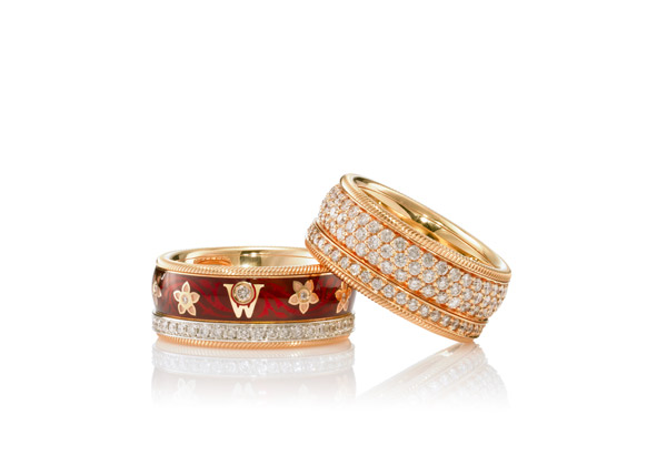 華洛芙珠寶早在創(chuàng)立之際便為英國皇室、歐洲貴族和沙皇定制珠寶,在此次全新的龍年紅色祈愿系列指環(huán)上,采用了皇家貴族特有的花紋設計。為了迎合中國傳統(tǒng)的農(nóng)歷新年,華洛芙以獨創(chuàng)的冷琺瑯技術,繪制了華美高貴的紅色。冷琺瑯獨特的透視感和耐磨性,將使這抹龍年紅色在未來的歲月中玲瓏剔透、歷久如新。