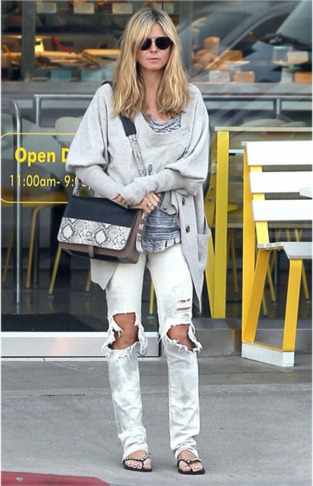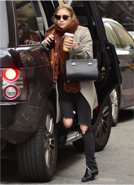 時(shí)尚解析:大大的破洞,膝蓋都跑出來了,然而上身則是大衣和大圍巾,小腳部分還有拉鏈設(shè)計(jì),搭配男性化的皮鞋,超級(jí)有范兒