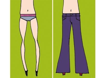如果你的腿形有點(diǎn)X的話,那就可以選褲管設(shè)計(jì)成喇叭形的牛仔褲來掩蓋腿形上的缺陷。