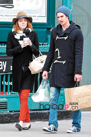 艾瑪·斯通剛剛和男友購物歸來,一身黑色風(fēng)衣看起來甜美動(dòng)人,正是因?yàn)樗┝艘粭l紅色的牛仔褲,一下子打破了黑色風(fēng)衣的拘謹(jǐn)保守,讓自己看起來非常養(yǎng)眼
