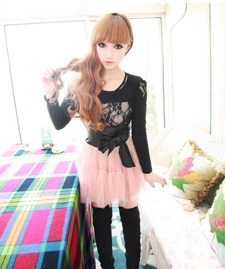 ????美美的仿佛是夢幻的娃娃!胸前是花紋的蕾絲,下面是層層的紗裙,裙子里面有內(nèi)襯,但最好還是穿不透肉的襪子哦