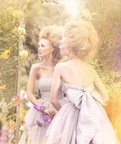 露肩的設(shè)計(jì),很能修飾肩部的曲線,并讓其展露無遺。性感的鎖骨讓你嫵媚感表現(xiàn)得淋漓盡致。腰間緊身的設(shè)計(jì),非常收腰,背后的大蝴蝶結(jié),可愛女人的幸福昭告天下。 復(fù)古的婚紗,有著難以言喻的美感。小豎領(lǐng)和特別的肩部設(shè)計(jì),充滿了淑女的美感。胸前金屬扣上的蝴蝶結(jié),端莊又美麗。婚禮的神圣感體現(xiàn)在蕾絲手套和珍珠耳環(huán)還有水晶皇冠上哦