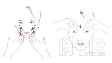 2.用食指和大拇指按摩嘴角和法令紋的位置
