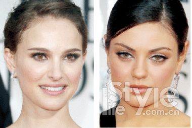 米拉·庫(kù)妮斯(右)顯老不僅僅是因?yàn)楹谘廴?,更是由于膚色不勻,但娜塔莉·波特曼(左)身為辣媽依然膚色光彩照人。