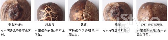 將產(chǎn)品涂抹在香菇的一半后放入水中浸泡,24小時(shí)后觀察兩邊的情況,來(lái)判定抑制黑色素生成的功效。