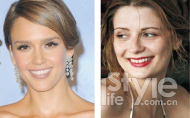 阿爾芭(左)的肌膚看起來(lái)很健康,有光澤;而米沙·巴頓(右)因?yàn)槠つw松弛、法令紋深敗下陣來(lái)。