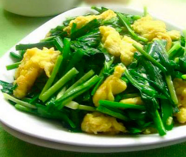 春天氣候冷暖不一,需要保養(yǎng)陽(yáng)氣。而韭菜最宜人體陽(yáng)氣,有天然“偉哥”之稱(chēng)。韭菜含有揮發(fā)油、蛋白質(zhì)、脂肪和多種維生素等營(yíng)養(yǎng)成分,有健胃、提神、強(qiáng)腎等功效。春韭為韭菜中的佼佼者,味道尤為鮮美。其根白如玉,葉綠似翠,清香馥郁。春韭吃法多樣,既可佐肉、蛋、蝦、墨魚(yú)等,又可做蒸包、水餃的餡料。炒綠豆芽或豆腐干時(shí)加些春韭,格外芳香可口