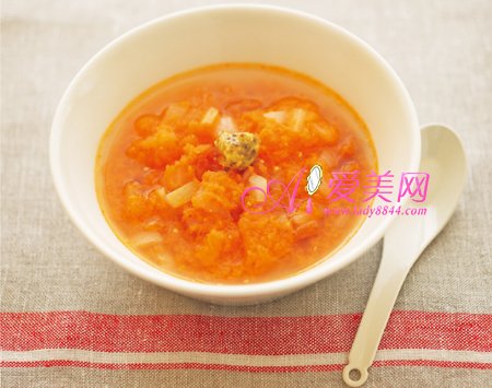 材料:紅甜椒50克、生姜少許、京蔥少許、金槍魚罐頭半罐、鹽1/3茶匙、胡椒粉少許、藕粉1勺、辣油少許、水200毫升。