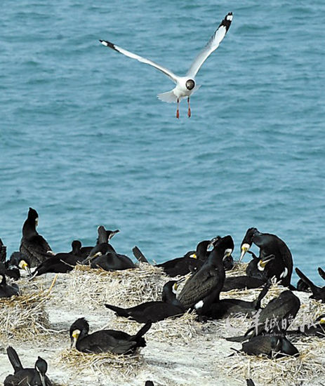 青海湖鳥島位于青海湖西北隅,由一東一西兩個島嶼組成。西面的叫海西山,又名小西山,狀若駝峰,面積只有0.27平方公里,每年四月來自南方云貴一帶及印度洋島國的斑頭雁、魚鷗、棕頭鷗和其它鳥類10萬余只候鳥在此筑巢棲息,遮天蔽日,鳥聲喧囂,數(shù)里之外也清晰可辨。距海西山島東一公里是海西皮島,面積46公頃。這兩個島合稱為鳥島,其鳥眾多,堪稱世界上分布最稠密的“鳥類王國”。