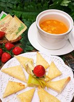 ??? 法國(guó)的起司(Cheese)也是非常有名,種類繁多。依型態(tài)分有新鮮而硬的、半硬的、硬的、藍(lán)霉的和煙熏的五大類;通常食用起司時(shí)會(huì)附帶面包、干果(例如核桃等)、葡萄等。另外,法國(guó)菜在享用時(shí)非常注重餐具的使用,無(wú)論是刀、叉、盤(pán)或是酒杯,因?yàn)檫@些均可襯托出法國(guó)菜高貴之氣質(zhì)。