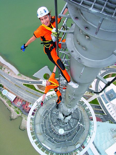 高達(dá)338米的澳門觀光塔可以游覽得很刺激,甚至可以說(shuō)是澳門最刺激的項(xiàng)目之一。“一躍而下”和“百步登天”雖然是完全相反的體驗(yàn)方式,但都是對(duì)人自身極大的挑戰(zhàn)。當(dāng)然,你完全可以只做個(gè)看客,在俯瞰澳門美景的同時(shí),向那些勇敢者致敬。