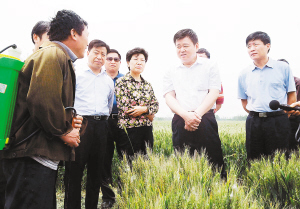 ????????????????????????????????? ?5月15日上午,徐光等市領(lǐng)導(dǎo)在西華縣了解小麥生長(zhǎng)情況。