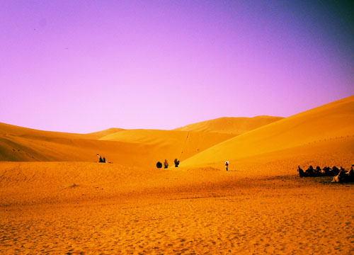 滑沙場地一般有索道纜車讓你可以不費力氣直達(dá)沙坡頂。但接下來的就不僅要有勇氣,還要掌握重心和基本的技巧了。它不是像滑草那樣靠助滑竿一點,就沖出去了?;呈亲诨嘲迳?,兩腿呈彎曲的姿勢,順著陡立坡勢飛速向下。這時,黃沙漫天飛舞,輕輕拍打身軀,沙坡下還會發(fā)出萬鼓齊鳴的隆隆聲,像是強烈地震時天空中轟鳴的響雷,令人膽戰(zhàn)心驚之外頗感刺激,無論是眼睛、耳朵、還是肢體和腦子皆在這一瞬間得到了極度的滿足和歡愉。除了似雷聲,還有人稱滑沙中發(fā)出的聲音為“金沙鳴鐘”。