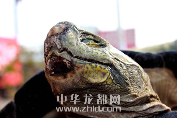 據(jù)王先生介紹,當(dāng)日8時(shí)許,他在沙潁河項(xiàng)城城區(qū)段釣魚時(shí),意外發(fā)現(xiàn)一只體型較大的烏龜,就喊來朋友幫忙,順利將大烏龜抓獲?;氐郊抑校跸壬鷮觚斞b在袋子里稱了稱,足有10公斤重。記者細(xì)看發(fā)現(xiàn),老龜4條腿布滿鱗片,約5厘米長的小尾巴蜷在殼里,背上頂著10個(gè)橢圓形圖案,龜殼黝黑。