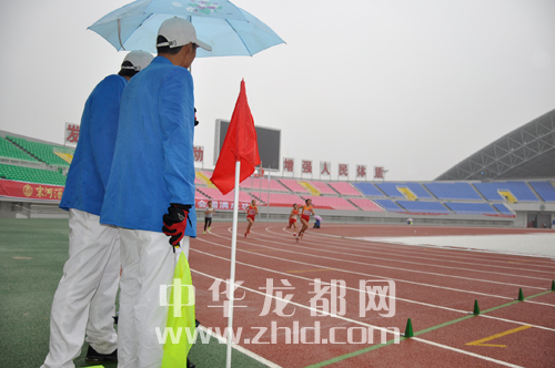 ??? 本網(wǎng)訊 11月22日下午,市二運(yùn)會(huì)田徑賽場(chǎng)上徑賽項(xiàng)目冒雨進(jìn)行。雨中,氣溫降至5攝氏度左右,觀(guān)眾也寥寥無(wú)幾。但是,我們的運(yùn)動(dòng)員和裁判仍然認(rèn)真的進(jìn)行著比賽。