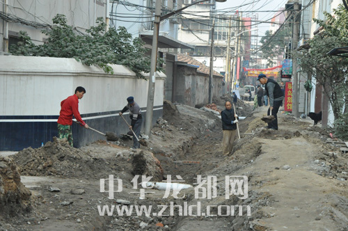 ????記者在新街支路的改造工程施工現(xiàn)場看到,該路段東西兩側(cè)各有一輛工程車正在作業(yè),道路的兩層灰土層已經(jīng)鋪好,數(shù)十名施工人員正在開挖污水管道。