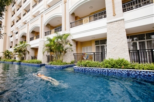 ????15棟依山而建的別墅錯(cuò)落有致地坐落在半山腰中,奢華卻不張揚(yáng),低調(diào)卻不內(nèi)斂。別墅內(nèi)古典禪意的設(shè)計(jì)風(fēng)格,自然的竹木裝飾,超大的森景陽臺(tái),特設(shè)的雙人全景泡池,超大的無邊界泳池、精巧的廚房,巧妙的將開放與私密完美的結(jié)合起來,詮釋著人和自然的和諧相融。
