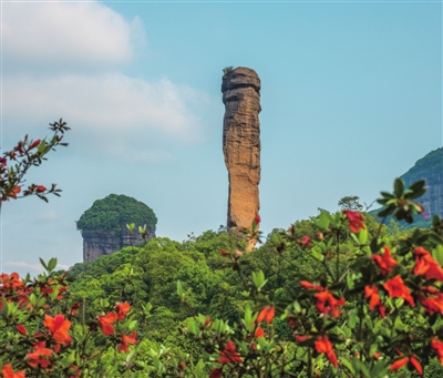 每年3-4月,在丹霞山景區(qū)的游道或錦江兩岸,都能看到火紅一片的野生杜鵑花盛開景致。杜鵑花也是韶關(guān)市的市花,象征著自強不息、生命力堅韌頑強的精神。丹霞山杜鵑花種類有紫花杜鵑、羅浮杜鵑、馬銀花、映山紅等。