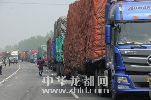 ????昨日11時許,記者驅(qū)車前往寧洛高速周口收費站,但前往現(xiàn)場的通道臨時封閉,記者只好返回,再沿周漯公路行駛。由于高速公路被封,眾多車輛被分流至公路上,造成周漯路部分路段堵車,直至12時許,記者才到達距周口市區(qū)約30公里處的事故現(xiàn)場。