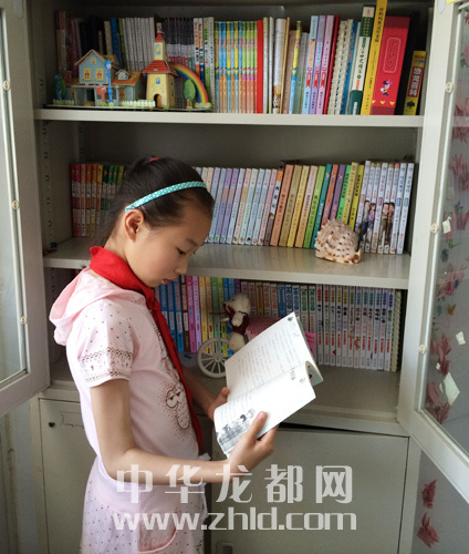 據(jù)了解,金株看得最多的是童話、文學(xué)類以及科普類書籍。金株有自己喜愛的作家,“楊紅櫻、曹文軒、伍美珍、郁雨君、楊鵬、沈石溪、黃蓓佳、湯素蘭、杰羅尼摩·斯蒂頓等等?!绷盒懔峤榻B,女兒剛上幼兒園的時(shí)候,自己給她買來《世界經(jīng)典童話》上下冊(cè),每天給金株念。女兒5歲的時(shí)候,梁秀玲就鍛煉金株把講過的故事復(fù)述出來,慢慢地金株能把故事完整地復(fù)述。梁秀玲又帶她買了一些童話書鼓勵(lì)她自己看?!懊康街苣?,我就會(huì)帶著金株去逛書店,每次都要買書。她比較喜歡按照作者的系列叢書來收藏,現(xiàn)在家里的兩個(gè)書架都沒放下她的書,有300多本藏書?!?/p>