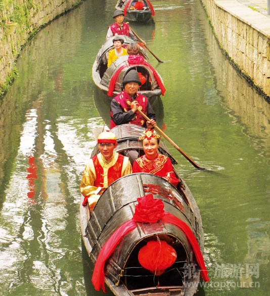 ????當(dāng)時(shí)代開(kāi)始向傳統(tǒng)致敬,選擇烏篷船作為迎娶新娘的交通工具已成為最時(shí)髦的方式。