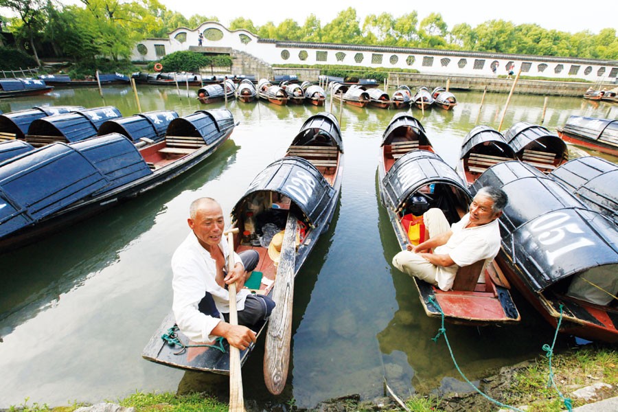 ????記者了解到,目前,紹興城里的烏篷船有150多艘,主要集中在城東的東湖景區(qū)和魯迅故居景區(qū)。烏篷船作為一種水上旅游項(xiàng)目,其對(duì)船工的要求很高。既要會(huì)劃船,又要會(huì)講解,還要懂得一些救生常識(shí)。