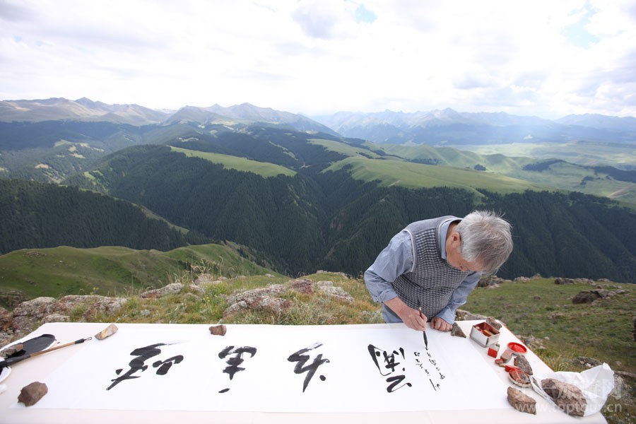 ????國內(nèi)書法家在喀拉峻之巔揮灑潑墨