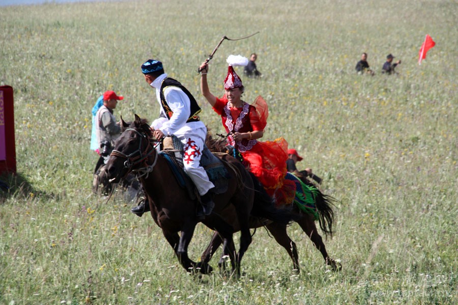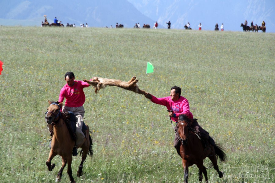 ????喀拉峻草原上的哈薩克族同胞舉行的姑娘追活動