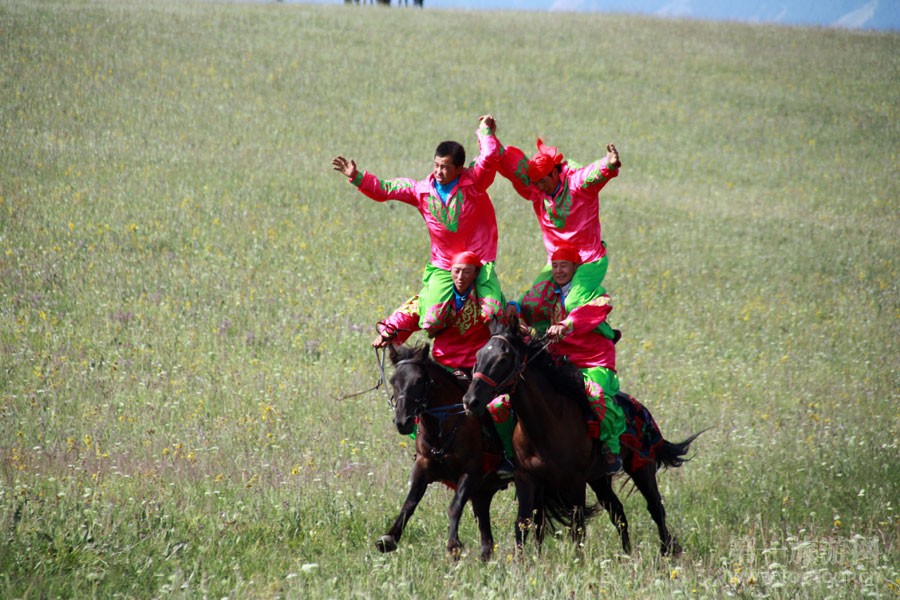 ????峻草原上的哈薩克族同胞舉行的馬上雜技