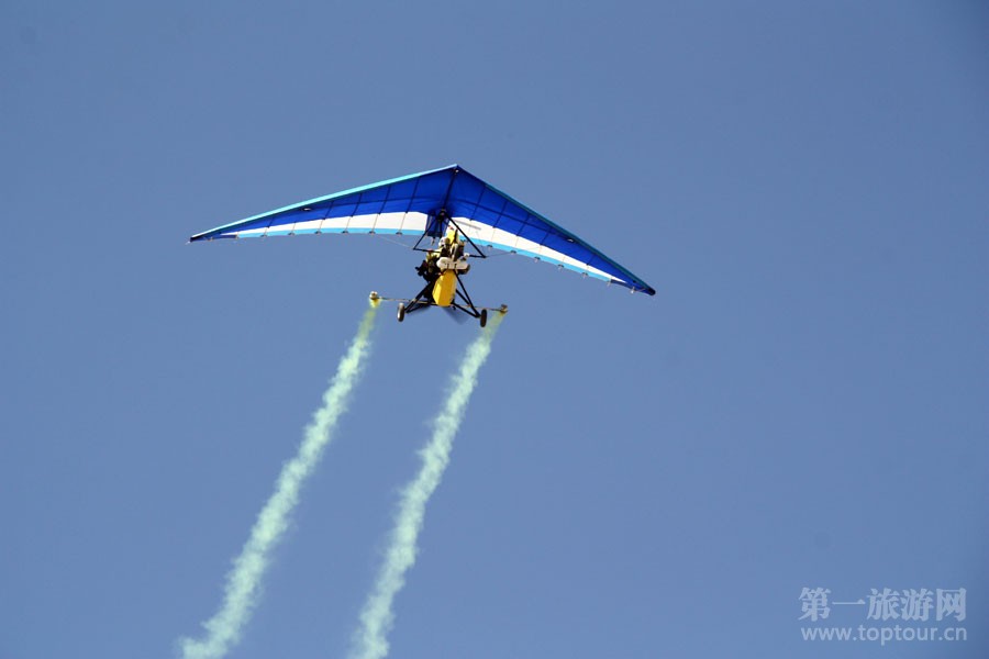 ????國內(nèi)飛行、滑翔、跳傘愛好者在特克斯縣高空觀看特克斯八卦城美景