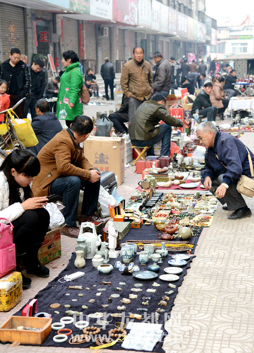 近年來,每逢周五市區(qū)男人街女人街書畫古玩市場熱鬧非凡。這個成立不久的書畫古玩市場吸引了很多周邊縣市甚至外省的藏品經(jīng)營者和收藏愛好者。目前,該書畫古玩市場擁有固定的書畫古玩店鋪30多家,流動商鋪近千家。為舉辦民間藏品展示交流活動、促進規(guī)范藝術(shù)品流通和發(fā)展文化產(chǎn)業(yè)創(chuàng)造了條件,其影響和作用也越來越大。越來越多的精美藏品出現(xiàn)在周口人的手中,越來越多的收藏愛好者來到周口交流。