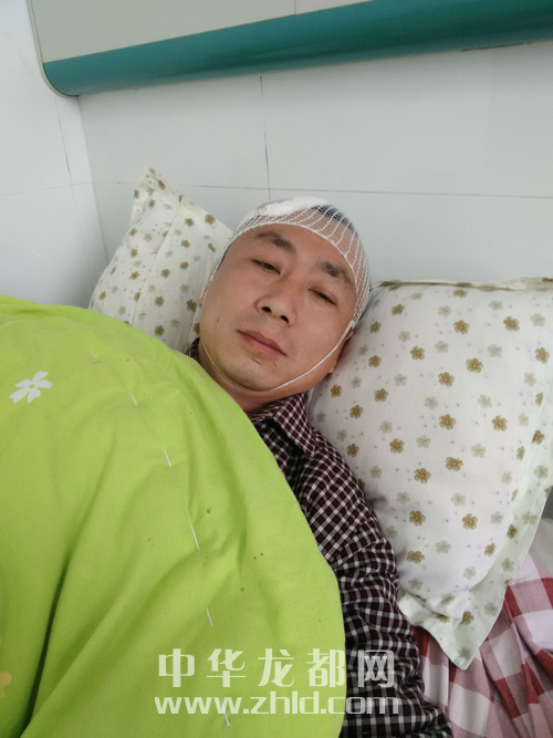 ???????醫(yī)生經(jīng)檢查發(fā)現(xiàn),胡效杰的頭部有3個(gè)傷口。當(dāng)日上午,記者來(lái)到商水縣人民醫(yī)院,看到胡效杰的頭上纏著紗布,躺在病床上輸液(如圖)。