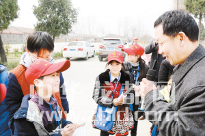 看到一直陪同參觀的西華縣園藝場黨組書記趙炯心,小記者紛紛走上前圍住他并提出各種各樣的問題。趙書記興致勃勃地接受了采訪,并對小記者提出的跟活動相關(guān)的問題逐一作了解答。趙炯心說:“這樣的公益活動對孩子成長很有意義。同時(shí),能為周口晚報(bào)的小記者提供接受愛國主義教育的場地也是我們的責(zé)任。明年,如果條件允許,我們還會繼續(xù)支持小記者活動?!?/p>